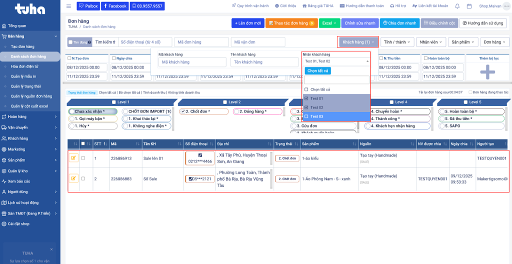 - Danh sách đơn hàng → Cho phép lọc các đơn thuộc 1 hoặc nhiều nhãm khách hàng .