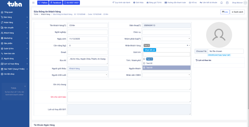 - Có thể thêm nhãn, xoá nhãn, hoặc gỡ nhãn khỏi khách.